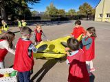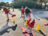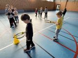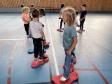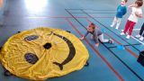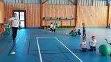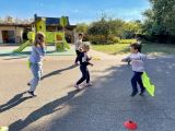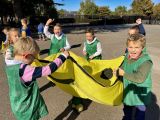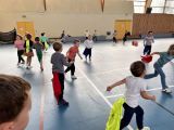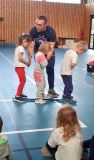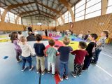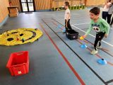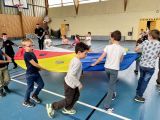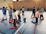 Tous les lundis et jeudis après-midis nous réalisons des séances de sport avec Nicolas, intervenant sportif au sein de l’UGSEL 56 sur le thème des jeux innovants. Nous découvrons ainsi le parachute, la pétanque, le cardiogoal, le kinball, le scratchball, les skis de cirque et échasses « gros pieds ». Les enfants prennent beaucoup de plaisir à découvrir ces nouveaux jeux !